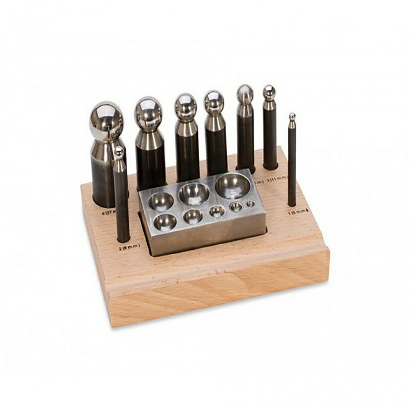 Each punch is carefully crafted from high-quality steel for long-lasting durability and wear resistance. The set features a variety of diameters, allowing you to shape metals of different sizes and thicknesses with ease. The accompanying steel block offers a solid and stable surface for forming, reducing movement during use and improving accuracy. Its smooth finish ensures minimal marking on your workpieces while maintaining perfect dome shapes.